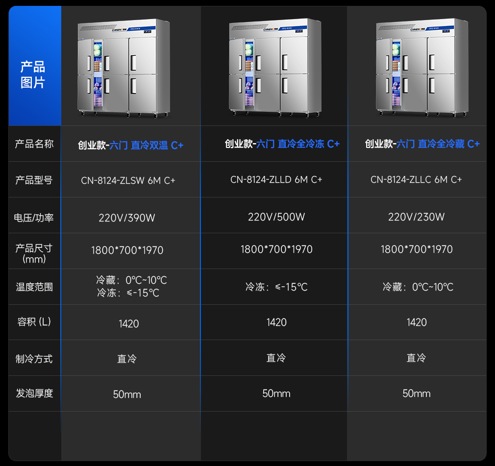 六門立式冷藏柜