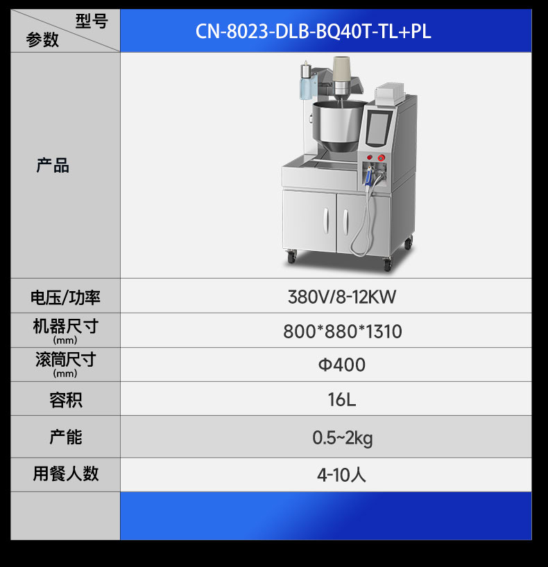 電控翻鍋+帶急停功能+紅外線測試+存儲800個菜譜(智能學習功能)+智能實時語音播報功能+帶三路自動噴料口