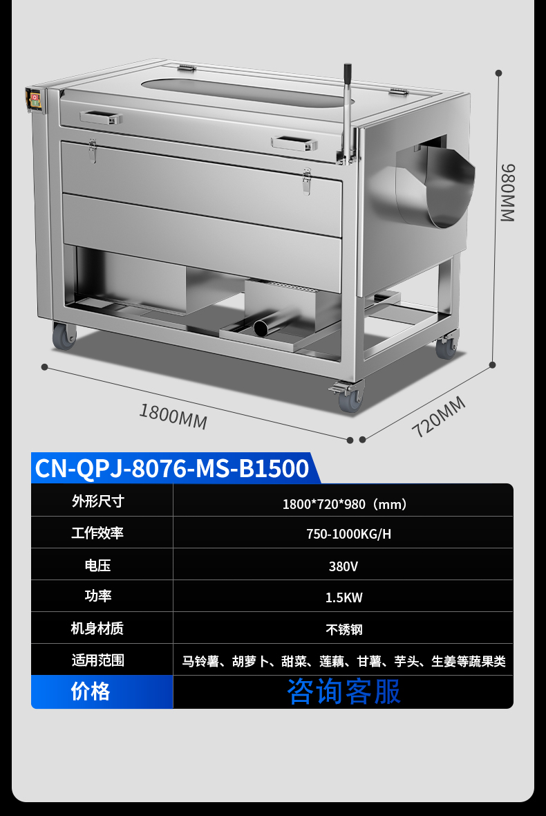 首頁 > 商用廚房設備 > 食品機械 > 毛刷清洗去皮機