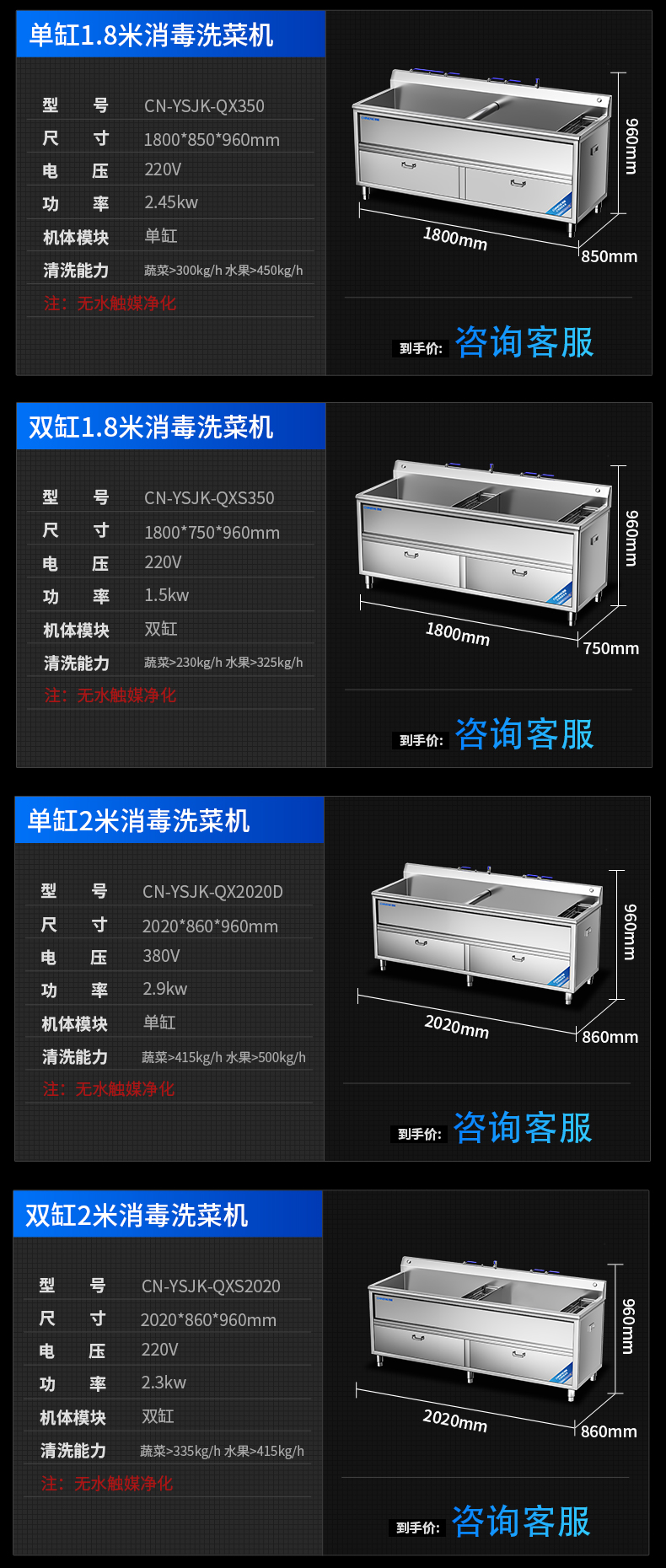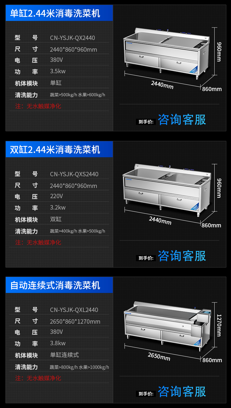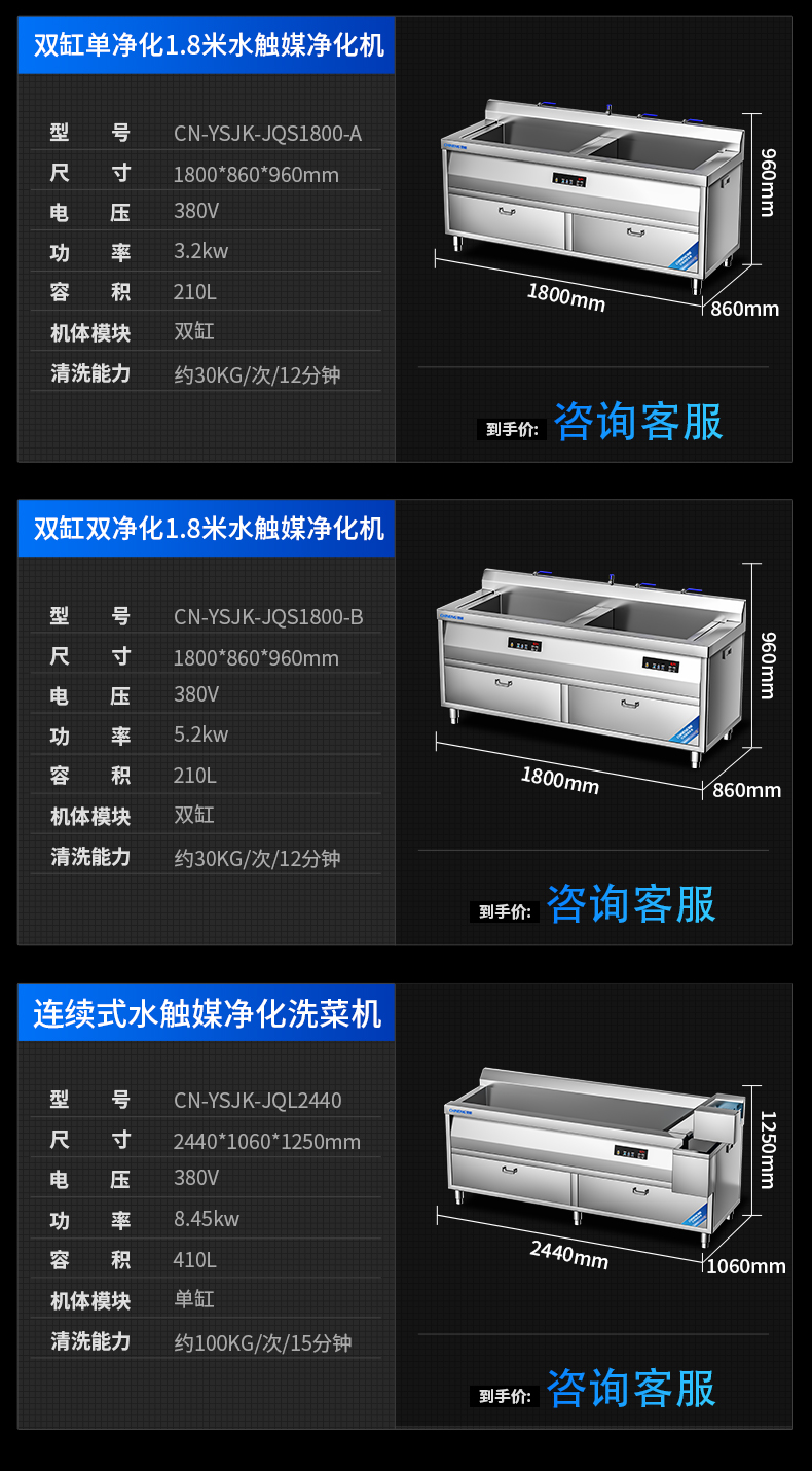 雙缸1.8米消毒洗菜機(無水觸媒凈化)