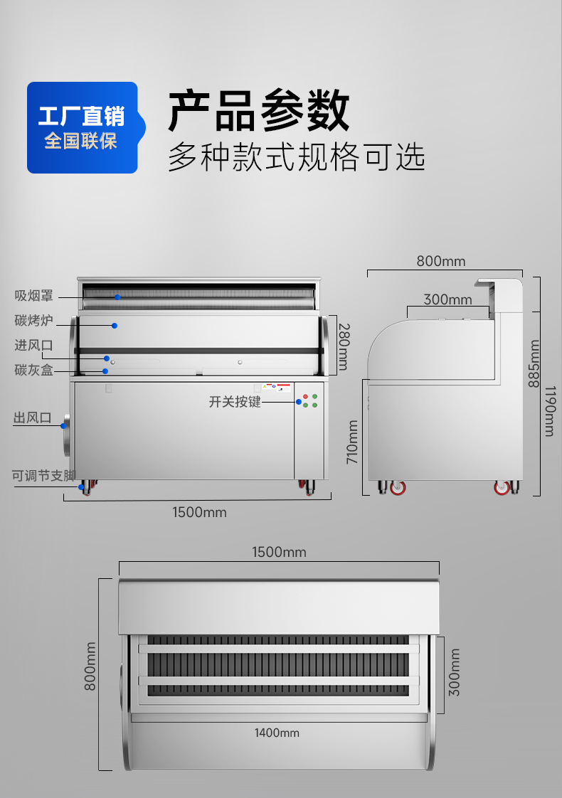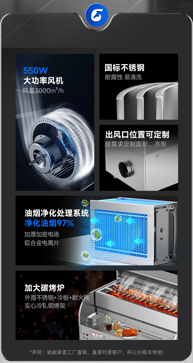配置:風機+凈化器*2+炭烤爐